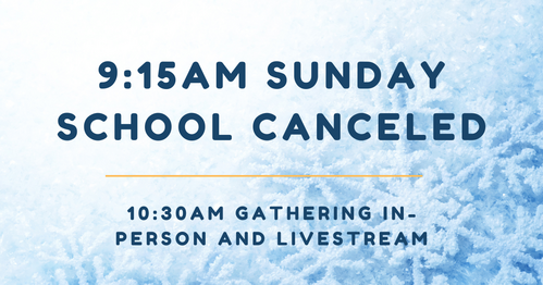 WINTER WEATHER WARNING! Due to the approaching winter storm, we are canceling Sunday School for March 15th. Please be cautious in determining whether to attend the Gathering. If the Gathering is canceled, it will be announced on our website and social media by 9 a.m.