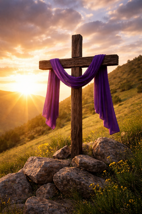 You'll notice the purple cloth on the cross in honor of this season. In Christian tradition purple is associated with sorrow for sin and spiritual reflection, and so churches incorporate purple into their liturgy to