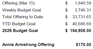 - Mar 29: Palm Sunday (regular schedule 9:15AM Sunday School and 10:15AM Worship Gathering)